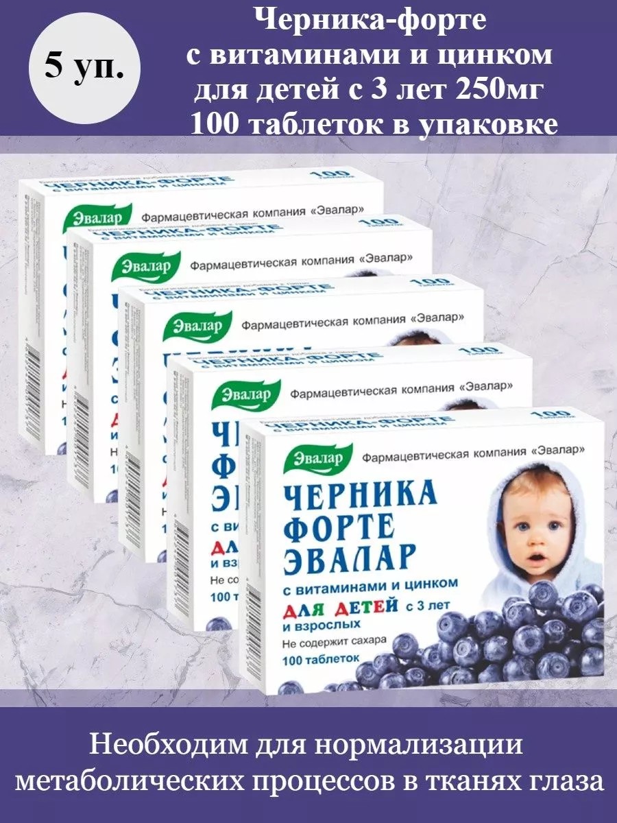 Эвалар Черника-форте д детей с 3лет 100тб 250мг 5 уп