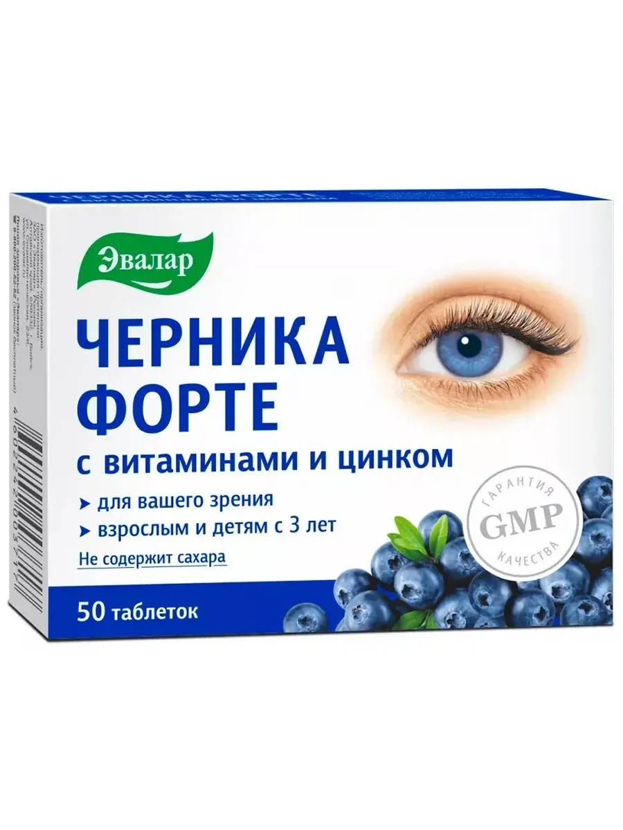Эвалар Черника-форте, таб. 50 шт по 0.25г (c витаминами и цинком)