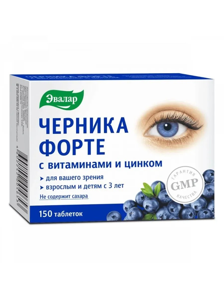 Эвалар Черника-Форте с витаминами и цинком, 150 таб (0,25г)