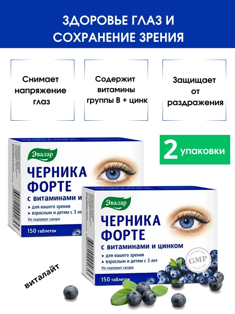 Эвалар Черника-форте с витаминами В и цинком,150 таб-2уп