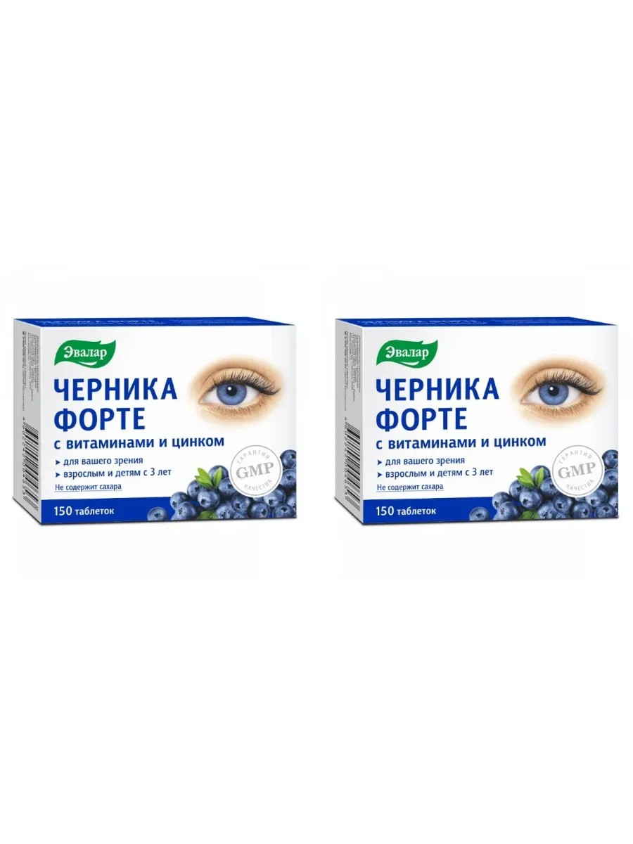 Эвалар Черника-Форте с витаминами и цинком, 150 таб (0,25г) х 2 уп