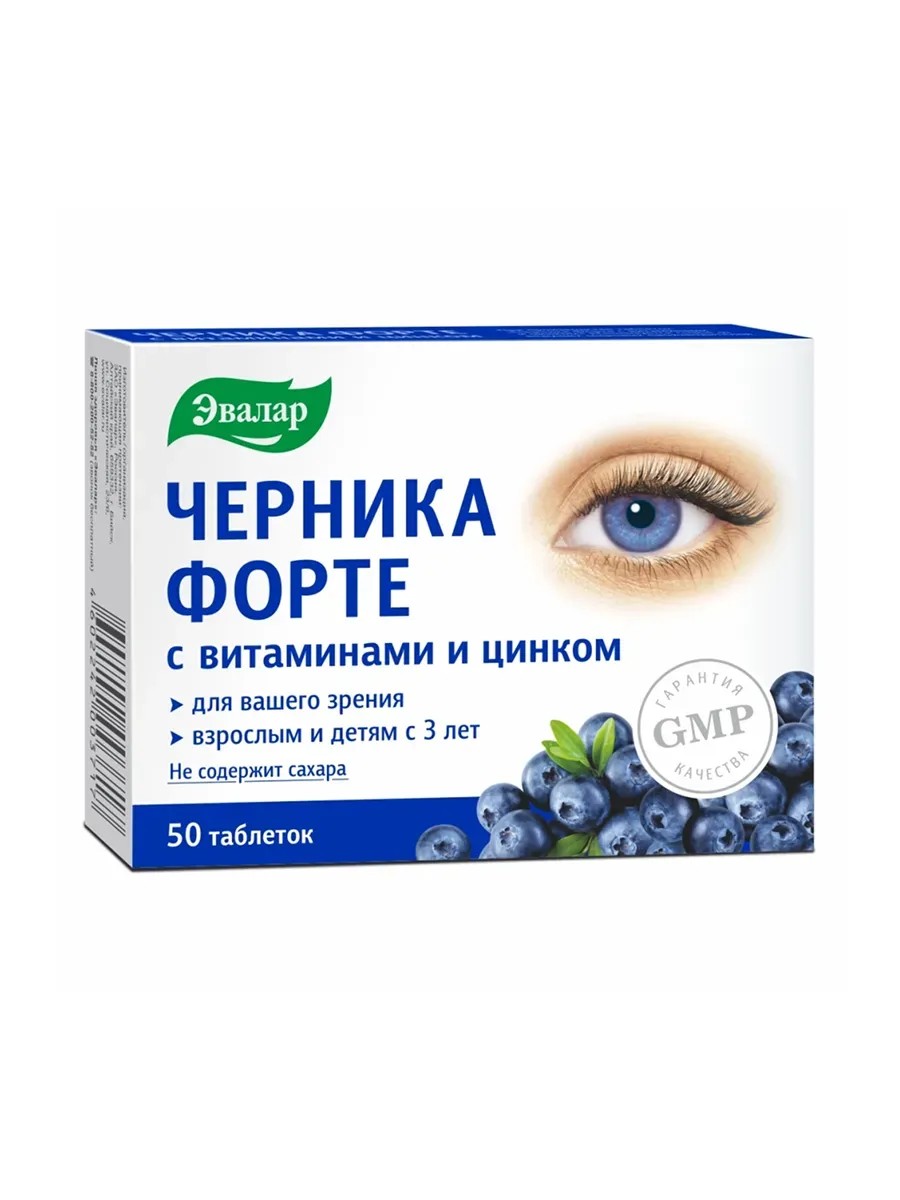 Эвалар Черника-форте с витаминами и цинком таблетки 2 уп по 50 шт.