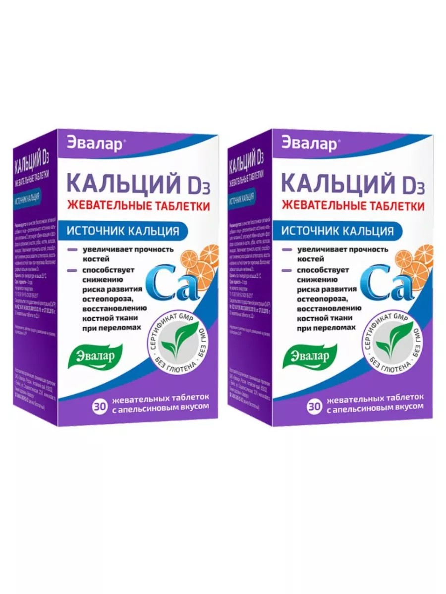 Эвалар Кальций D3, 30 табл. по 2,0 г 2уп