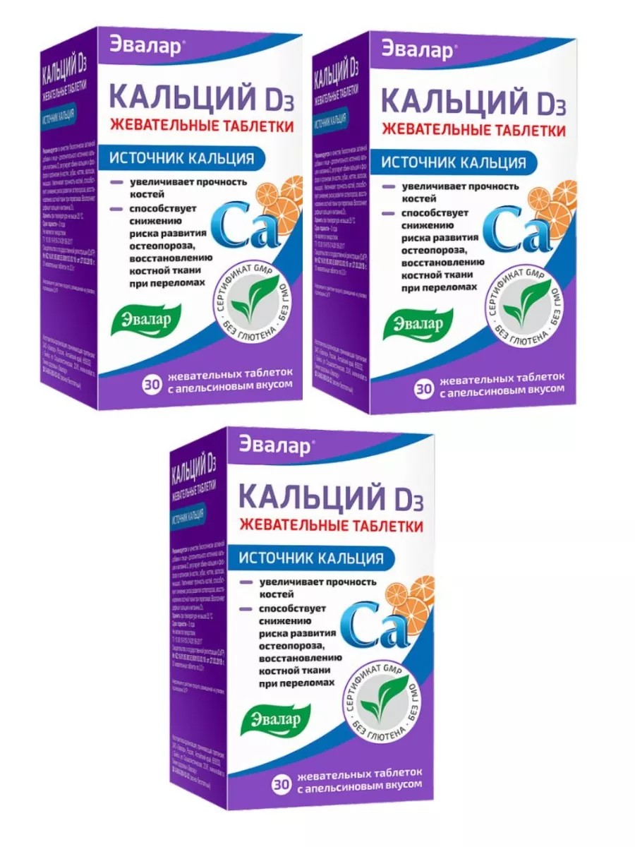 Кальций с витамином D3 - биологически активная добавка к пище, предназначенная для укрепления костей и зубов. Данный продукт содержит в своем составе кальций - один из основных элементов, необходимых для роста и поддержания здоровья костей. Витамин D3 способствует лучшему усвоению кальция и регулирует уровень кальция в крови. За счет того, что таблетки являются жевательными, они легко усваиваются организмом. Рекомендуется принимать по одной таблетке в день, утром или вечером во время еды. Продукт не рекомендуется для детей до 14 лет и беременных женщин.