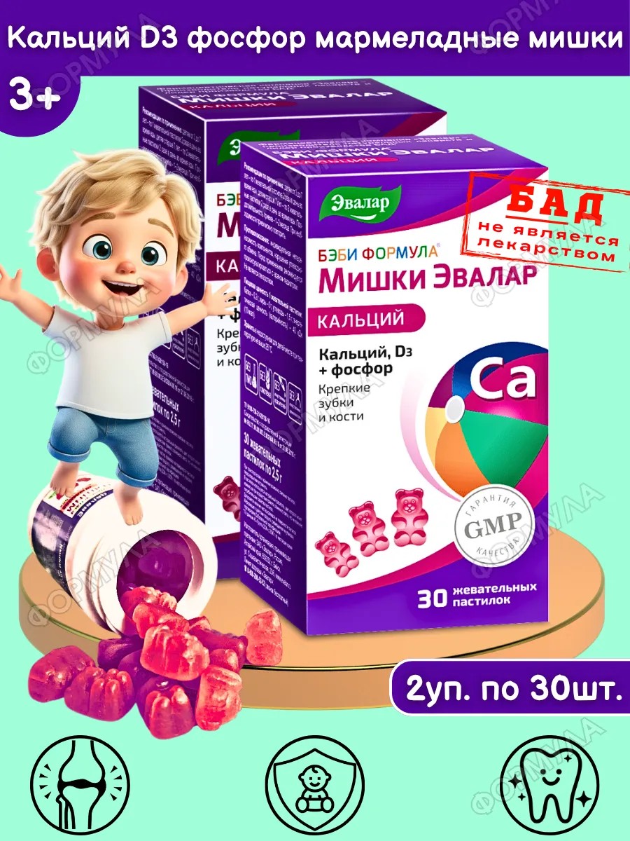 Эвалар Кальций Д3 Фосфор мармеладные мишки для здоровья детей 30х2