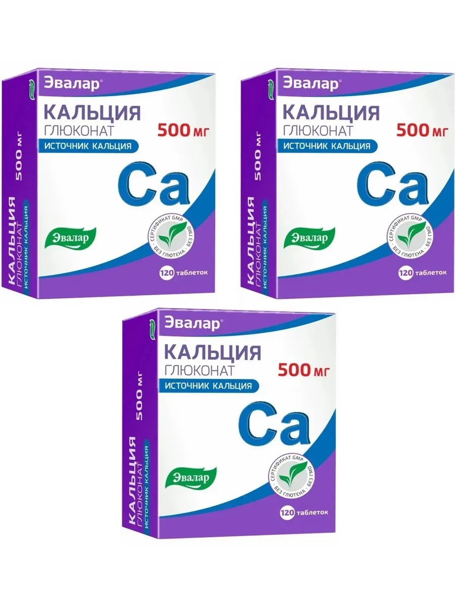Эвалар Кальция глюконат 500 мг, 120 таб (530 мг) х 3 уп