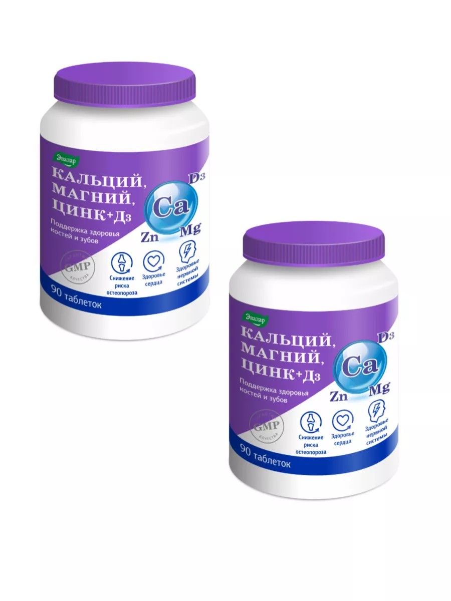 Эвалар Кальций Магний Цинк+Д3 90 табл по 1,5г-2уп