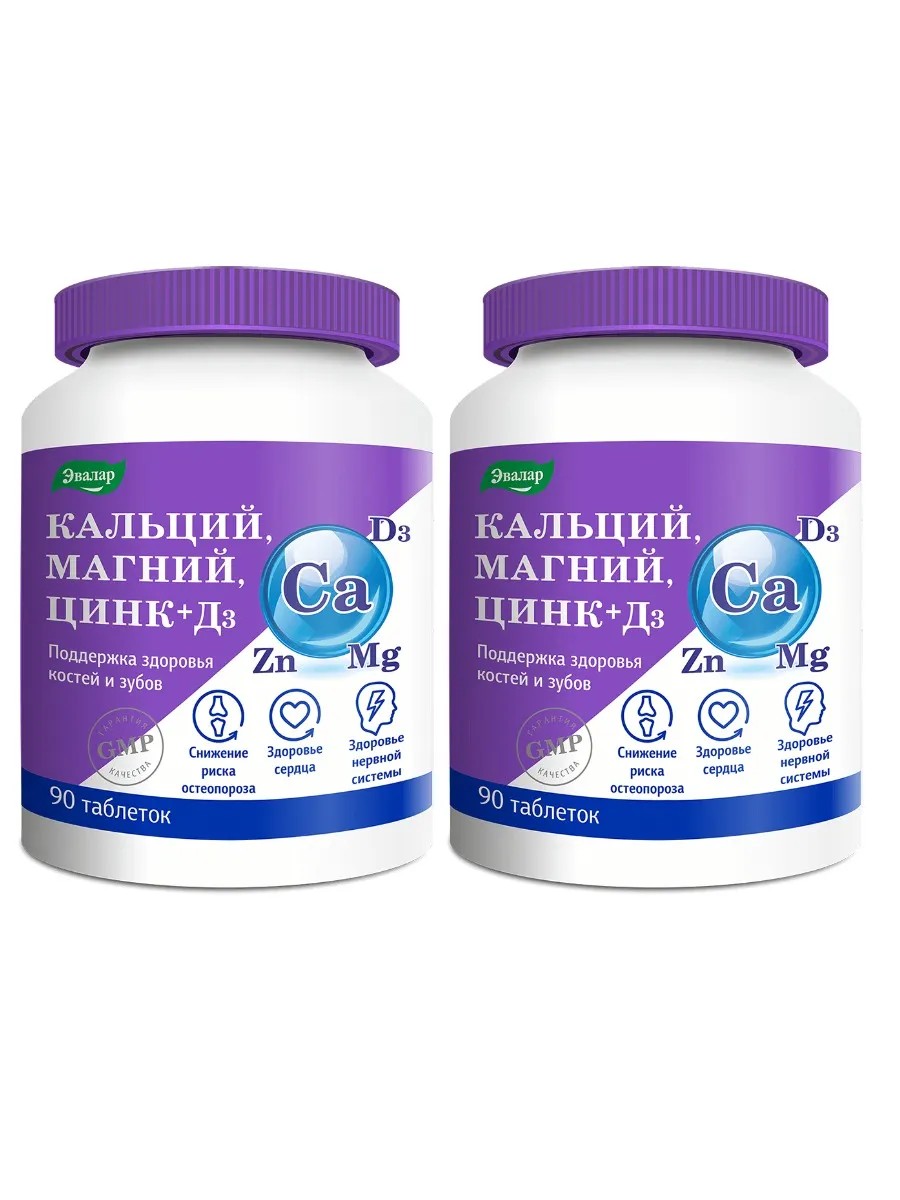Эвалар Кальций Магний Цинк + Д3 90таб/2уп