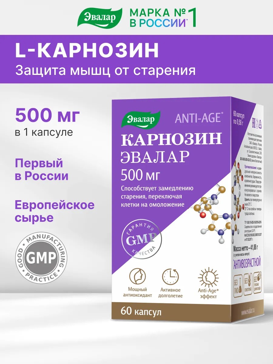 Эвалар Карнозин 500мг для молодости, против старения,60 капс