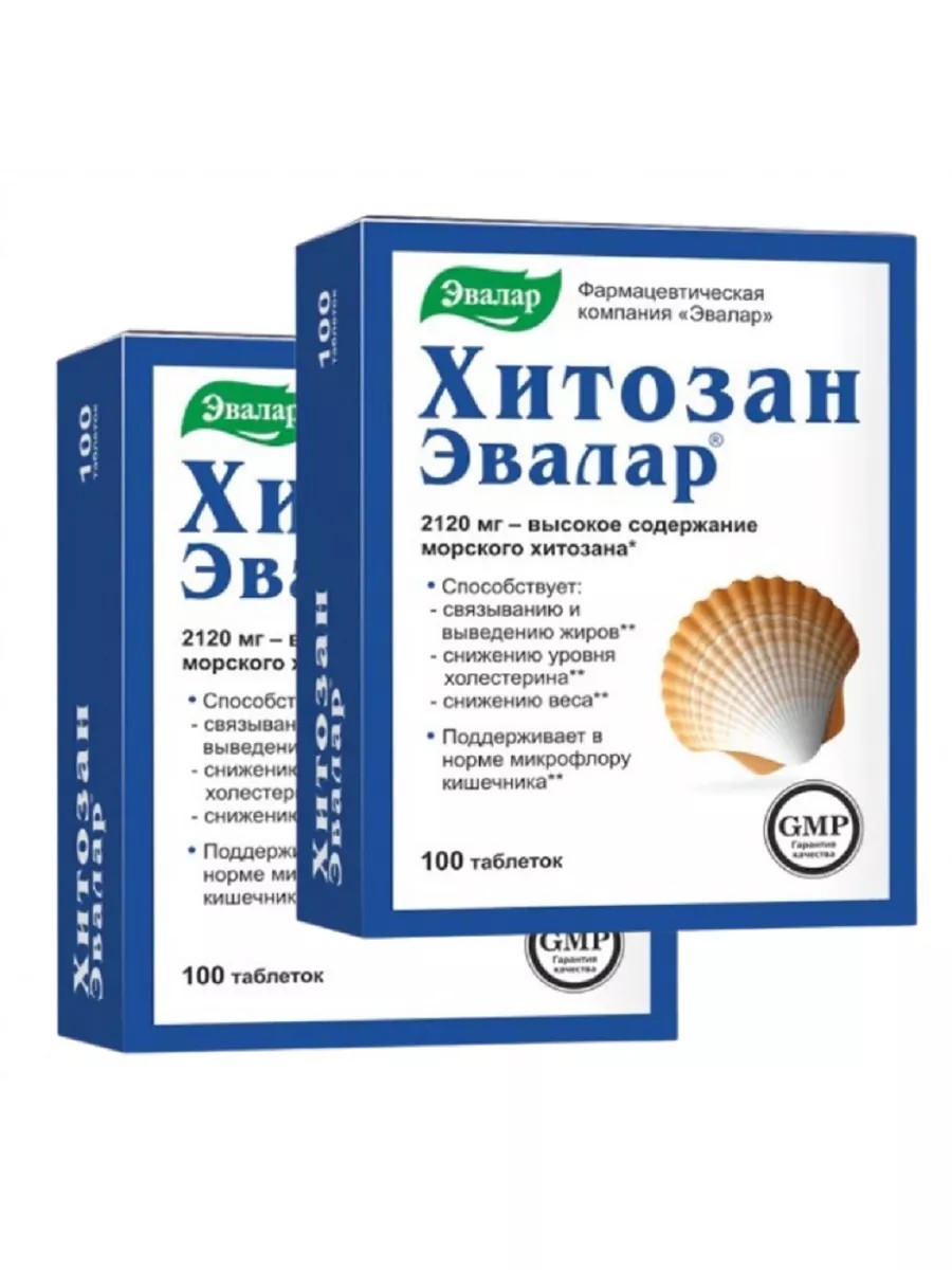Эвалар Хитозан 100 тб по 500 мг 2 упаковки