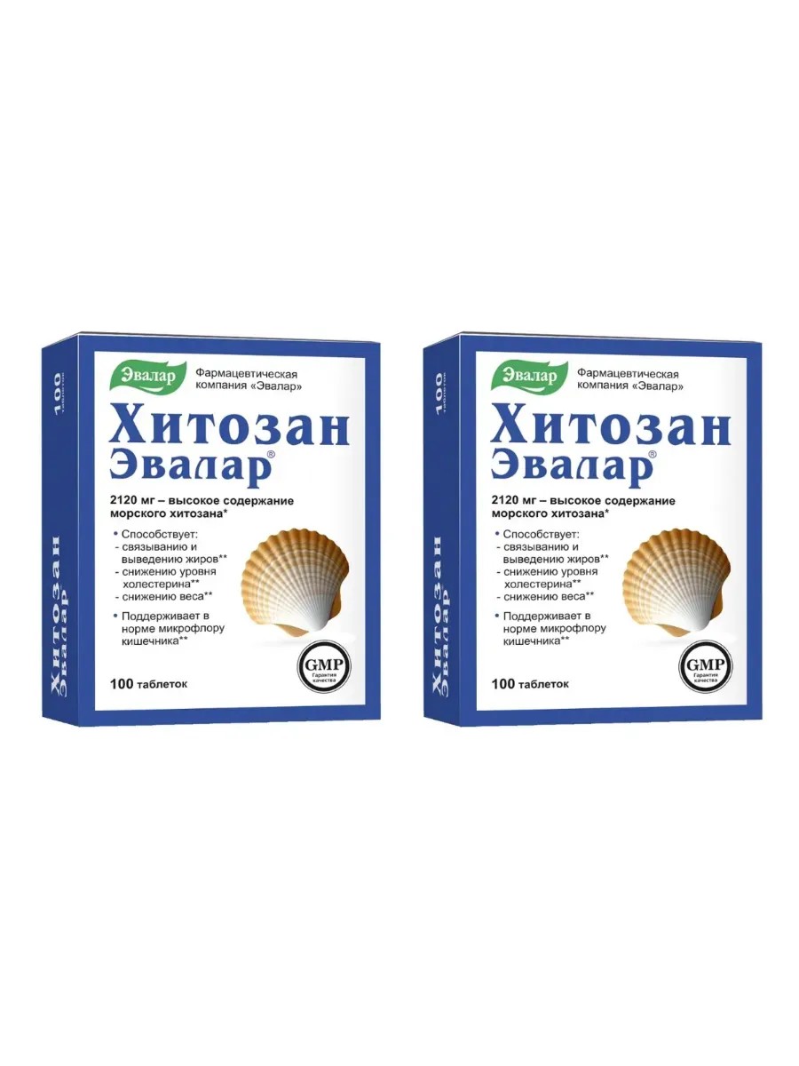 Эвалар Хитозан для снижения веса, 100 таблеток по 0,5 г х 2 уп