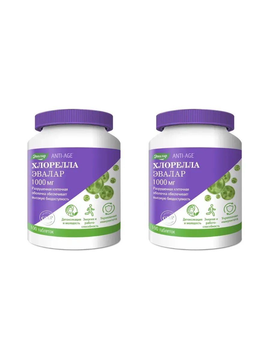 Эвалар Хлорелла 1000 мг, 100 таблеток по 1,1 г х 2 упаковки