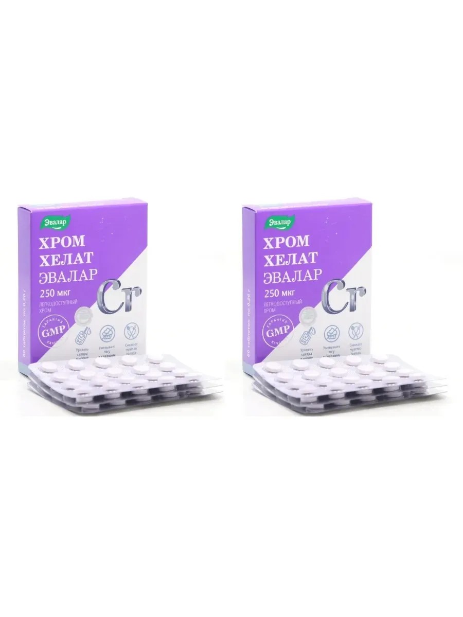 Эвалар Хром хелат, 60 таб (0,26г) х 2 уп