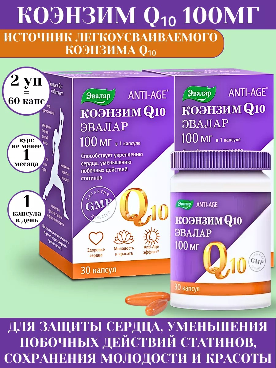 Эвалар Коэнзим Q10 100мг легко усваиваемый 30капс*2уп