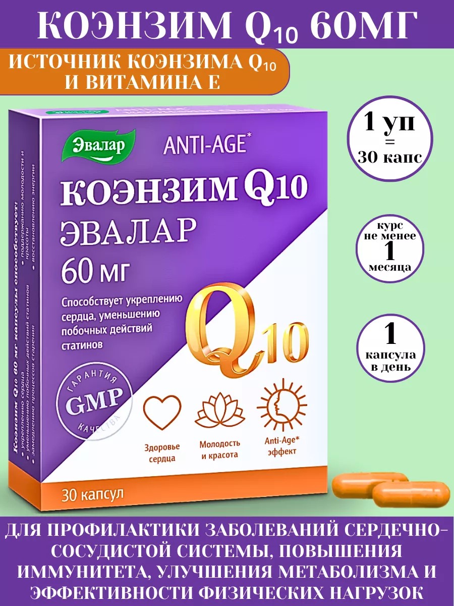 | Комплектация | коэнзим q10 60мг капсулы n30 капс по 0,3г*1шт |