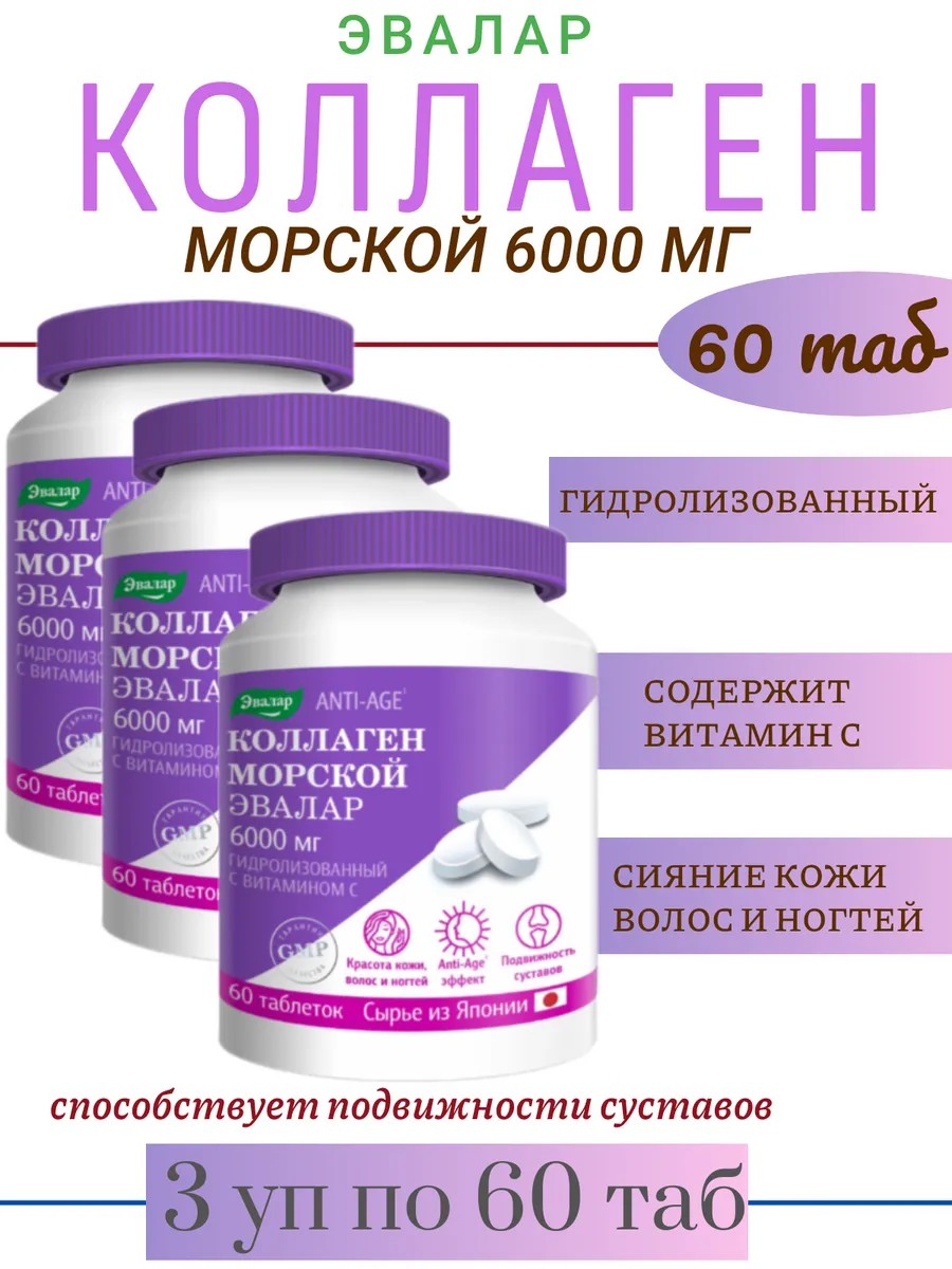 Эвалар Коллаген морской 6000мг 60 таб - 3 уп