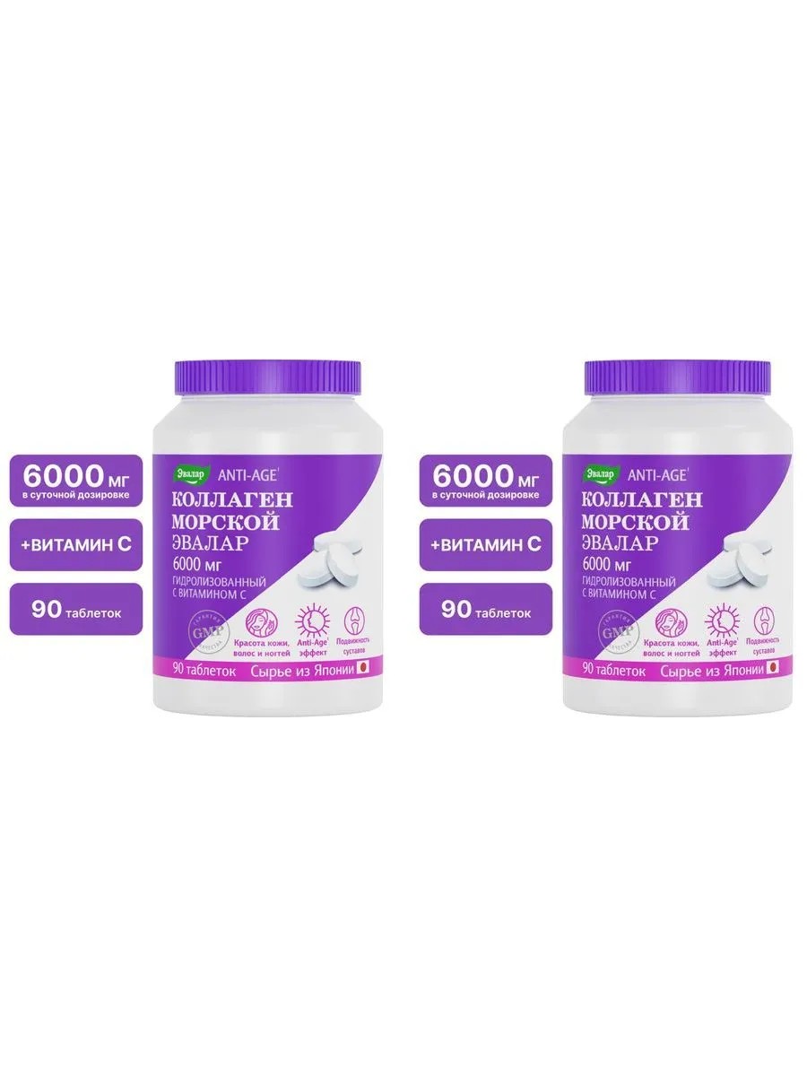 Эвалар коллаген морской эвалар 6000мг n90 табл п/о по 1,2г - 2шт