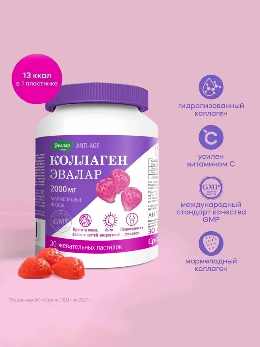 Эвалар Коллаген мармеладные ягоды, 30 жевательных пастилок