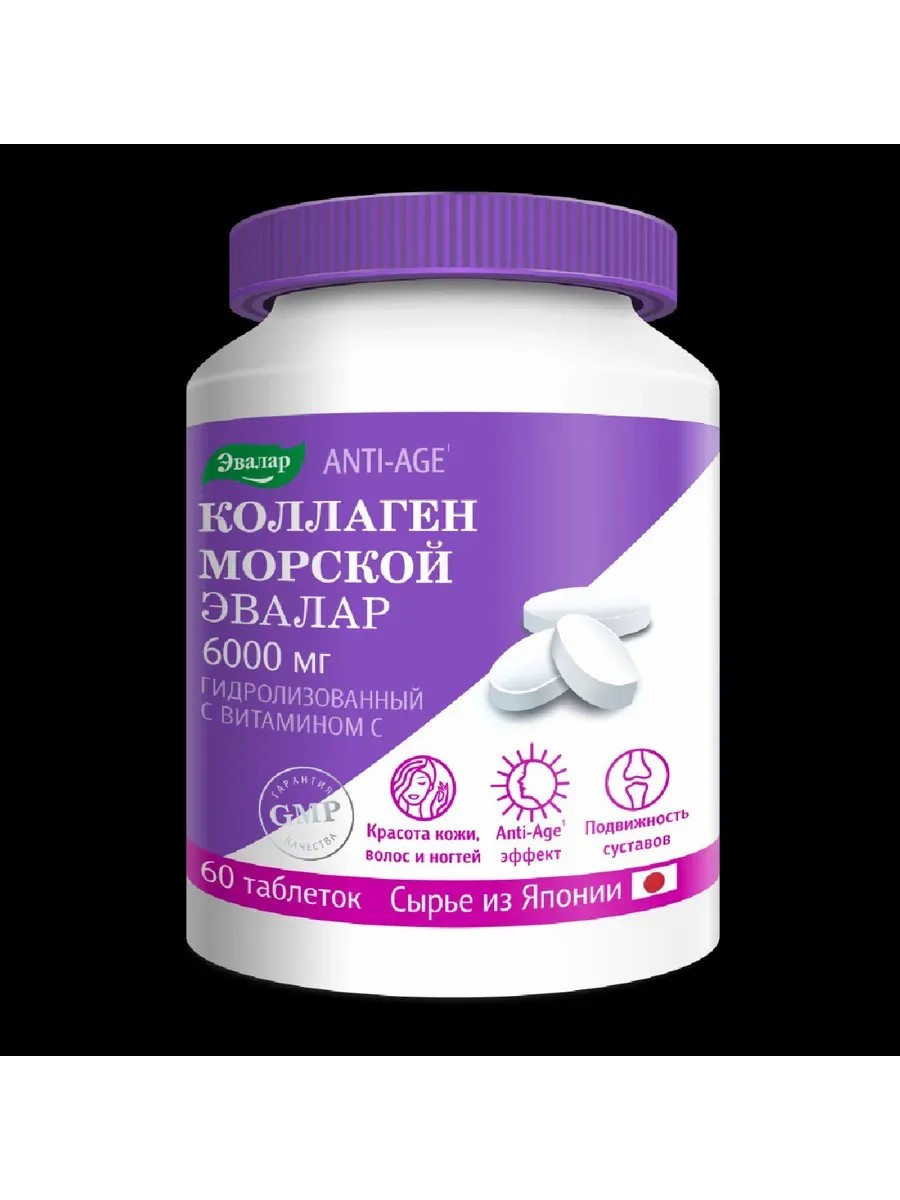 Эвалар Коллаген морской таблетки, 6000 мг 60 шт. 1,2 г -1 уп