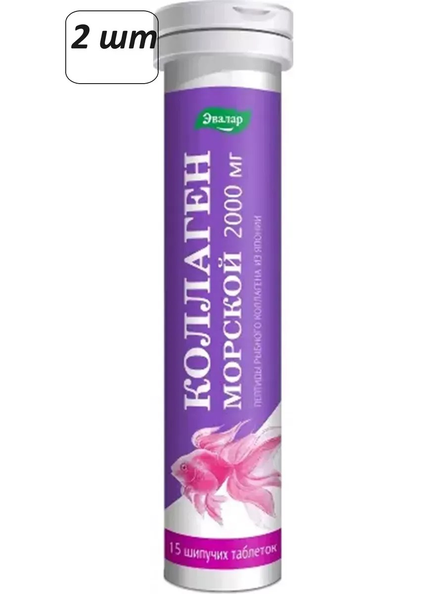 Коллаген морской шипучие таблетки - это биологически активная добавка к пище, содержащая пептиды рыбного коллагена из Японии, усиленные гиалуроновой кислотой и витамином С. Морской (рыбный) коллаген - самый эффективный и легко усваиваемый, поскольку его молекулы максимально схожи с молекулами человеческого коллагена. Он считается наиболее чистой и безопасной формой коллагена, эффективнее поглощается и быстрее проникает в кровоток. Коллаген - это основной белок, который составляет нашу кожу, связки, суставы, ногти и волосы. Его уровень в организме уменьшается с возрастом, что приводит к потере упругости и эластичности кожи, возникновению морщин и других признаков старения. Применение этой БАД способствует: красоте кожи, волос, ногтей, профилактике остеопороза. Действие морского коллагена усилено гиалуроновой кислотой и витамином С. Гиалуроновая кислота поддерживает водный баланс, подтягивает и разглаживает кожу, совместно с коллагеном способствует укреплению соединительной, костной и мышечной ткани. Витамин С способствует усвоению коллагена и стимулирует синтез собственного.Рекомендуется взрослым - по 1 таблетке 1-2 раза в день, предварительно растворив в 200 мл воды комнатной температуры.