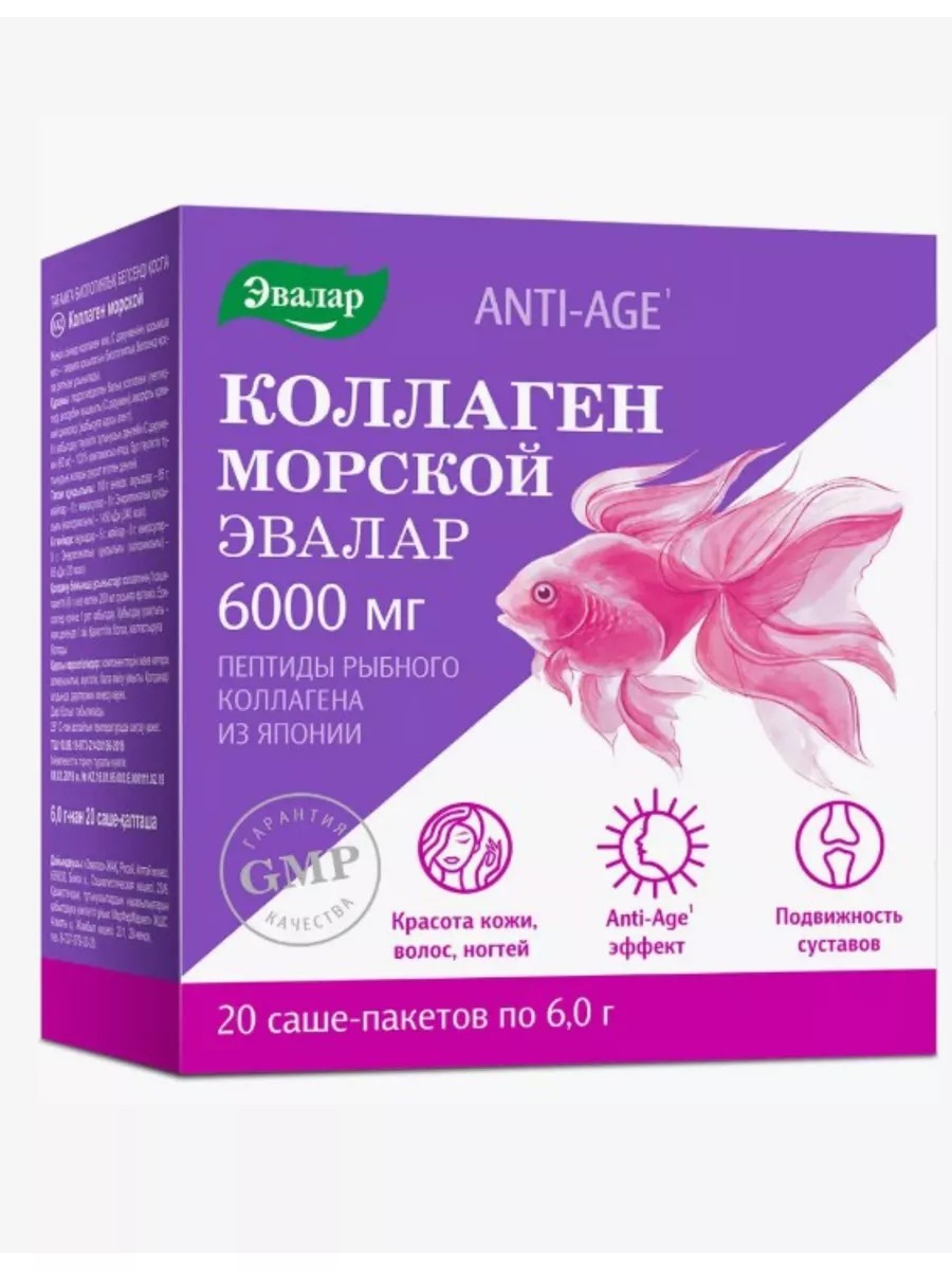 Эвалар. Коллаген морской 20 шт. порошок массой 6 гр г