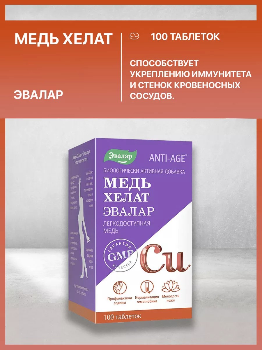 Эвалар Медь хелат, 100 таблеток