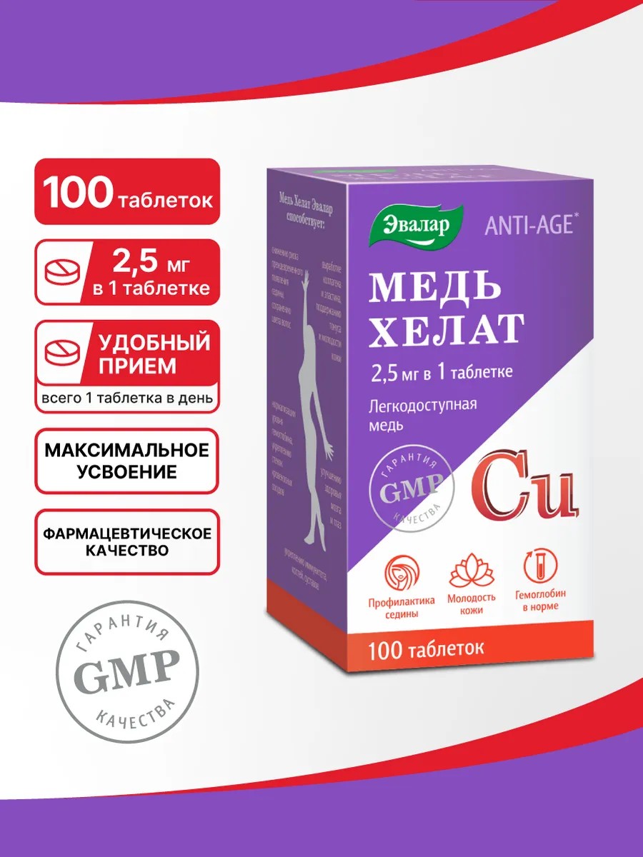 Эвалар Медь Хелат, витамины для иммунитета, молодости, 100 таб