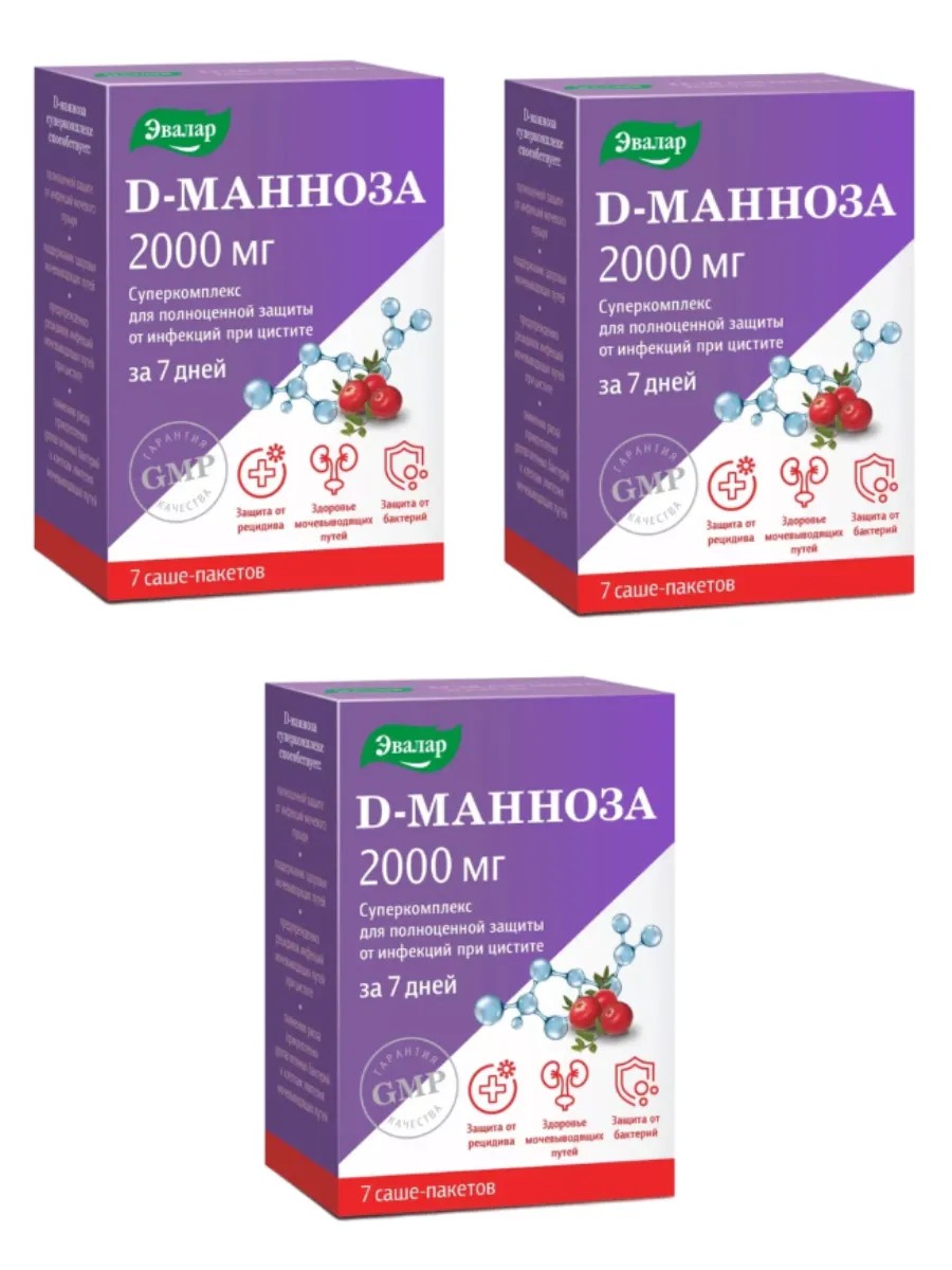 Эвалар D-манноза 2000 мг при цистите - 3 уп.