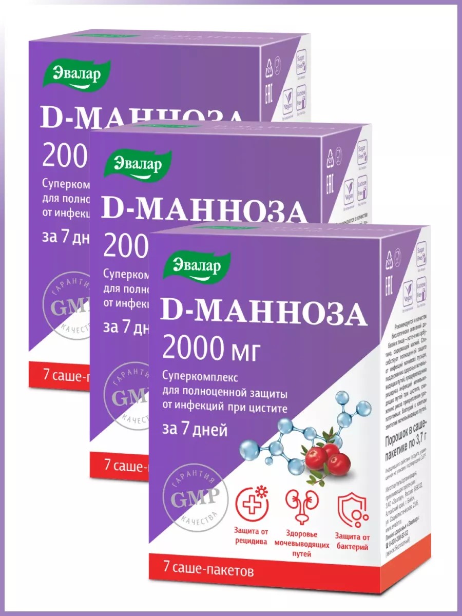 Высокая дозировка d-маннозы (2000 мг) в одном саше;