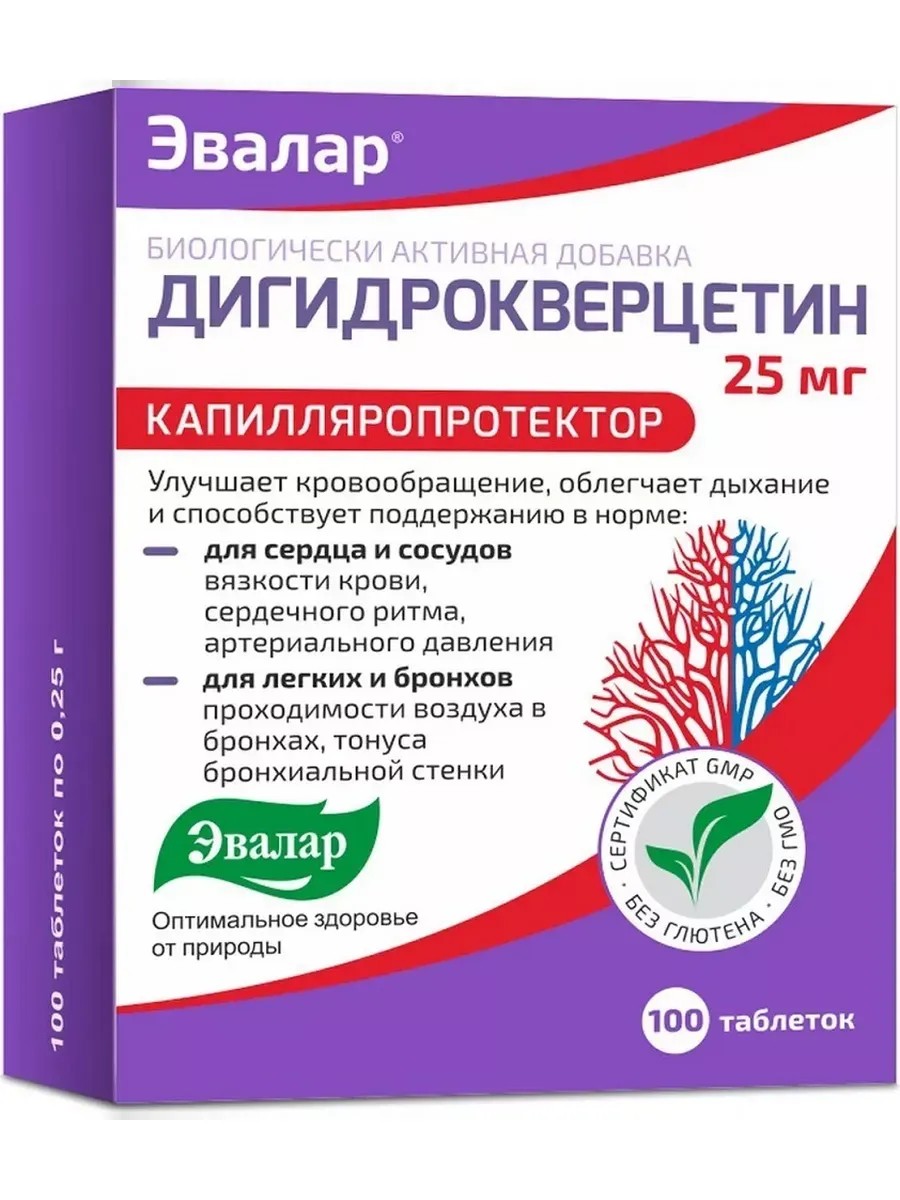 Эвалар Дигидрокверцетин, 100 таблеток массой 0,25 г