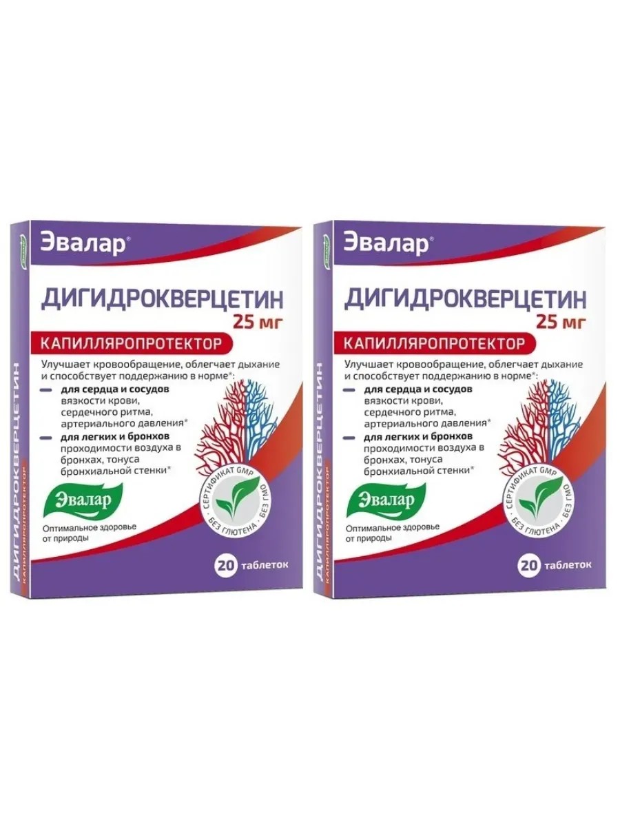 Эвалар Дигидрокверцетин, 20 таб (0,25г) х 2 уп