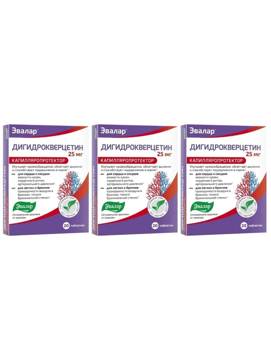 Эвалар Дигидрокверцетин, 20 таб (0,25г) х 3 уп