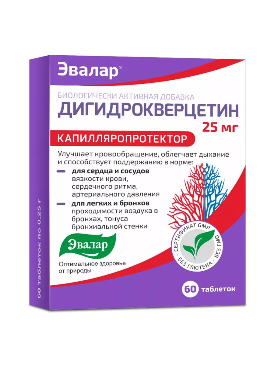 Биологически активная добавка «Дигидрокверцетин» создана, чтобы помочь вам сохранить в здоровом состоянии легкие, бронхи и сердце. Эффект достигается за счет положительного воздействия на сосуды этих органов и реологические характеристики крови.