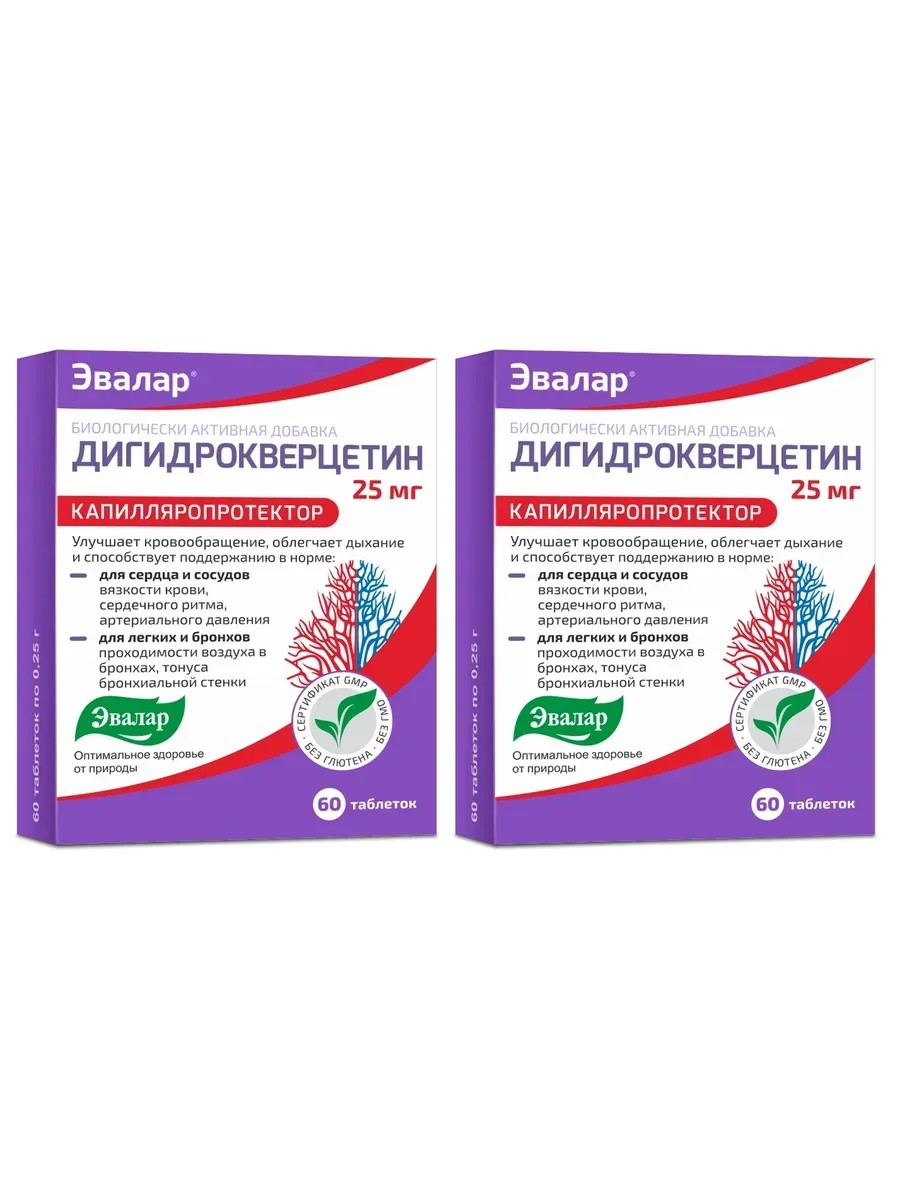 Эвалар Дигидрокверцетин, 60 таб (0,25г) х 2 уп