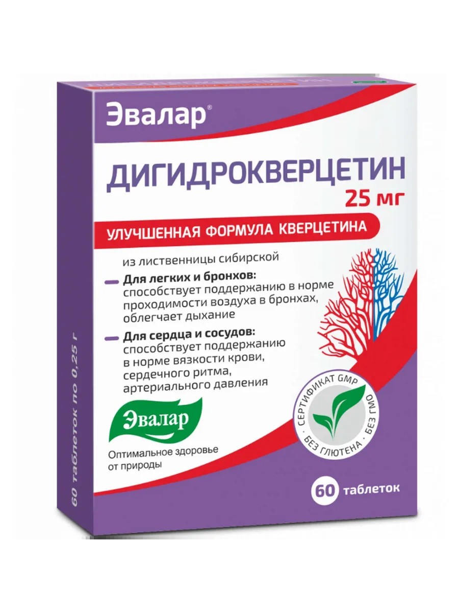 Эвалар Дигидрокверцетин капилляропротектор 0,25г 60шт -1 уп.
