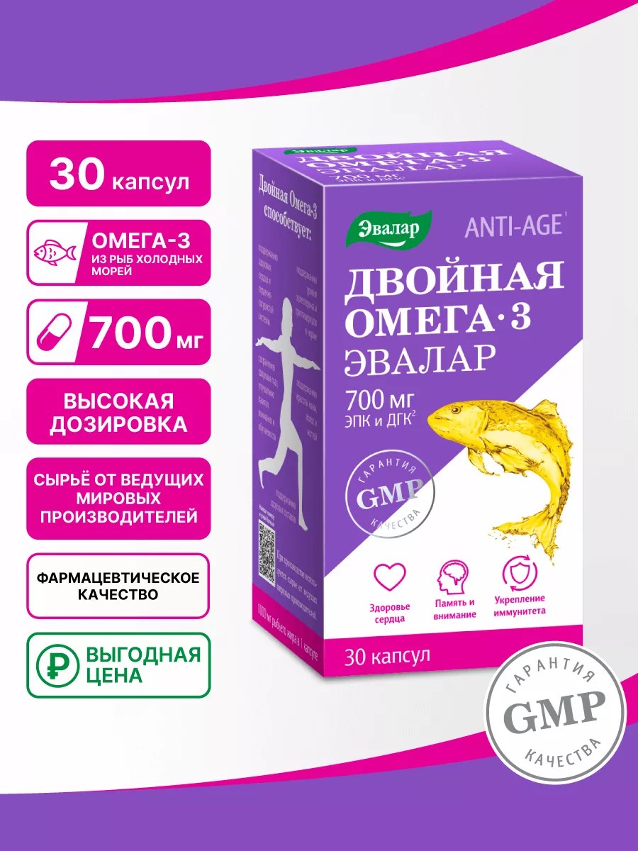 Эвалар Двойная Омега 3 700 мг рыбий жир