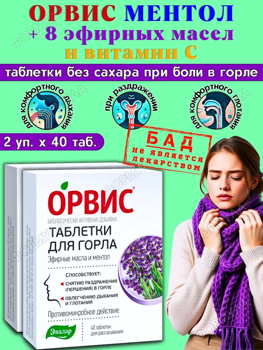 Эвалар Орвис Эфирые масла и ментол таблетки для горла 40таб*2уп