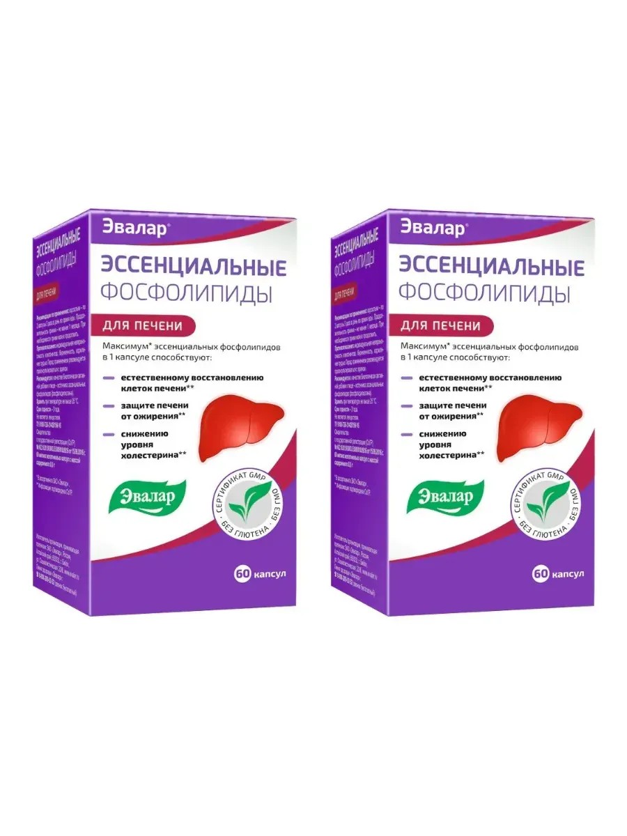 Эвалар Эссенциальные фосфолипиды для печени, 60 капс (0,8г) х 2 уп