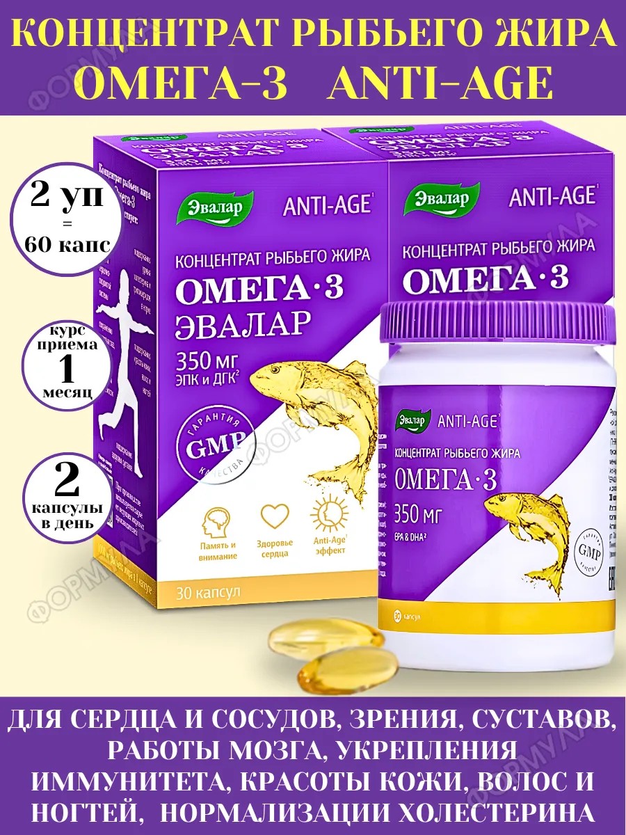 Эвалар Концентрат рыбьего жира Омега-3 30капс*2уп