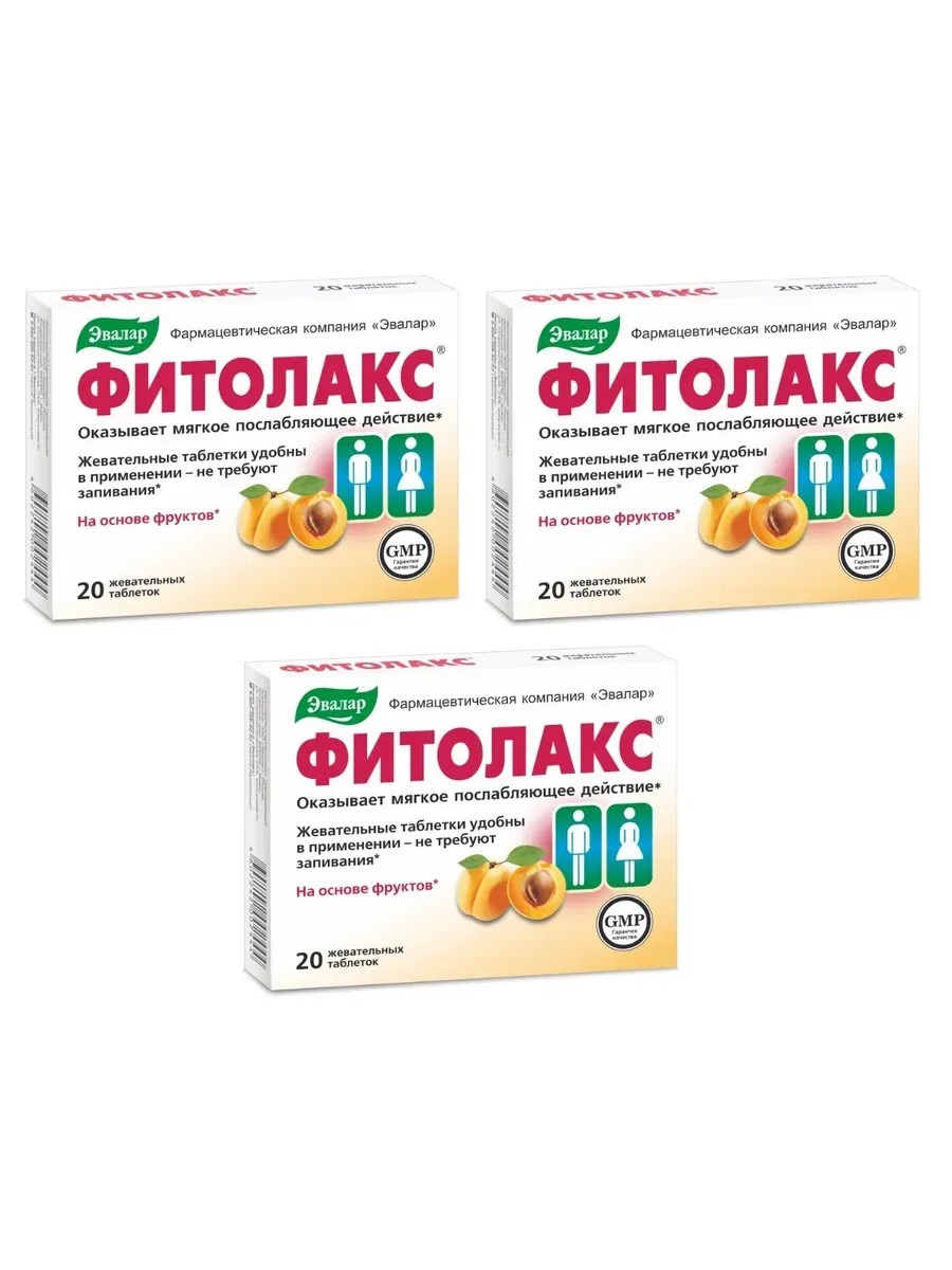 Эвалар Фитолакс, 20 жевательных таблеток (500 мг) х 3 уп