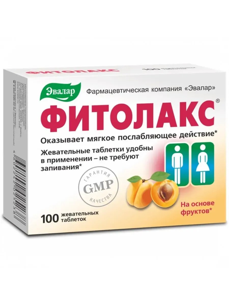 Фитолакс — добавка к пище на основе фруктов. Сочетание фруктов и лекарственных трав в одной таблетке оказывает естественную помощь кишечнику. Добавку можно принимать детям от 14 лет. Действие мягкого послабляющего Фитолакс происходит на протяжении ночи. Вечером - фитолакс, утром - результат.Такой режим приема удобен и совпадает с естественными биоритмами организма. В каждой жевательной таблетке сбалансированный состав для нормальной работы кишечника:-Порошок абрикоса – богатый клетчаткой компонент, который имеет слабительное и легкое мочегонное действие, помогает выведению холестерина, улучшает состояние прямой кишки, содержит комплекс витаминов и микроэлементов. Входящие в состав абрикоса пектин и полифруктозиды улучшают усвояемость других компонентов.-Сенна – стимулирует активность толстого кишечника, помогает бороться с хроническими запорами, не имеет эффекта привыкания и может применяться длительное время. Действие активных компонентов мягкое, не вызывающее дискомфорта.-Подорожник – помогает нормализовать состав желудочного сока, снять воспалительные процессы, улучшить состояние слизистых.-Укроп – снимает спазмы кишечника, уменьшает вздутие, имеет антимикробное действие, препятствует образованию патогенной среды.-Биологически активная добавка Фитолакс рекомендуется в качестве мягкого послабляющего средства, может назначаться самостоятельно или в составе комплексных схем при:-Запорах, вне зависимости от их причины.-Сниженной моторике кишечника.-Нарушениях пищеварения.-Компоненты в составе препарата стимулируют пищеварительные процессы и работу кишечника. В течение 8-12 часов происходит опорожнение. При курсовом приеме:-Состояние стенок кишечника приходит в норму.-Выводятся шлаки и токсины, снижается уровень холестерина.-Нормализуется состав и количество желудочного сока.-Формируется здоровая микрофлора.-При избыточном весе можно принимать Фитолакс для похудения, чтобы:-Улучшить усвоение пищи.--Ускорить метаболизм.-Очистить и укрепить желудочно-кишечный тракт.-