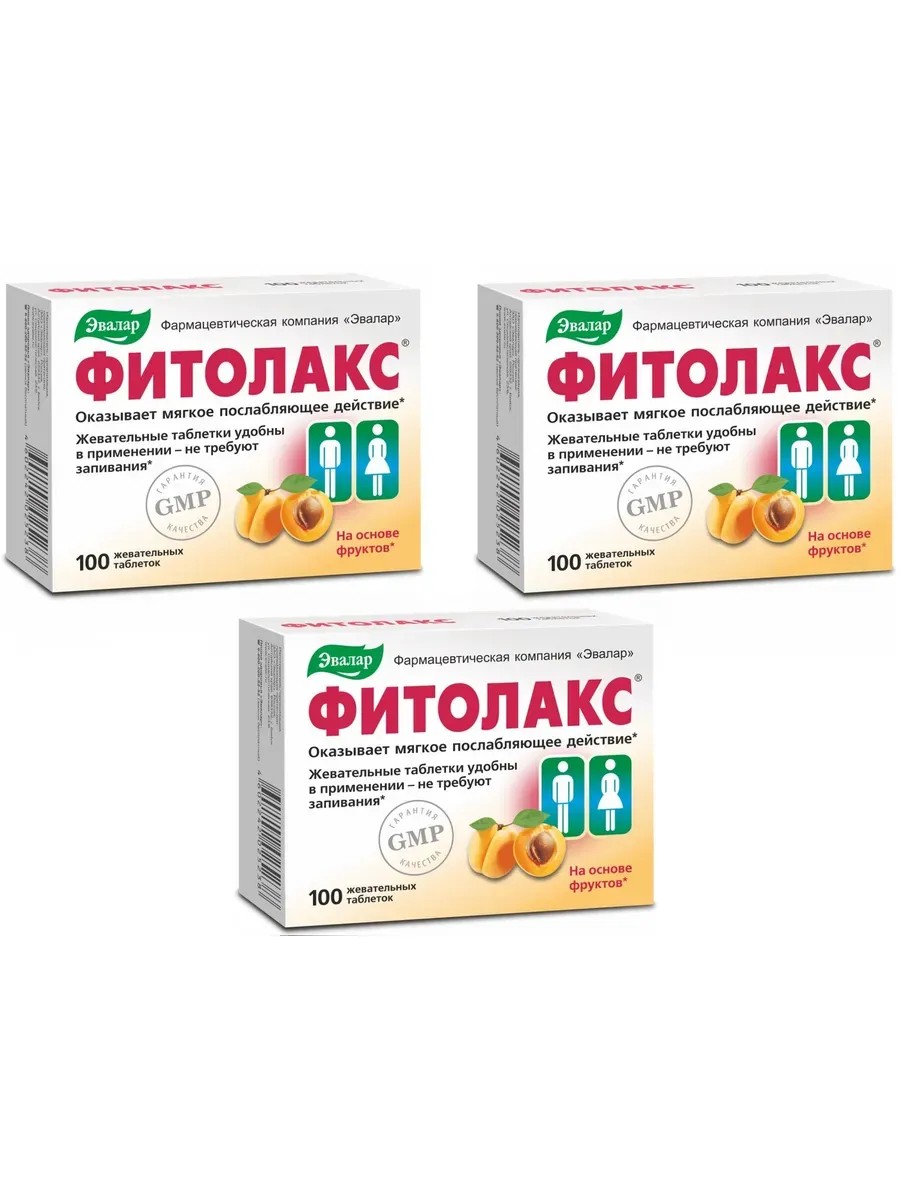 Эвалар Фитолакс слабительное средство, 100 жев таб (500 мг) х 3 уп