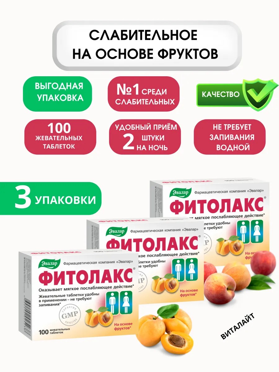 Эвалар Фитолакс слабительное на основе фруктов,100 таблеток-3уп