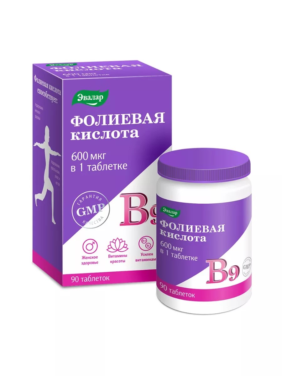 Эвалар Фолиевая кислота 600 мкг с витаминами В12 и В6 90шт 1уп