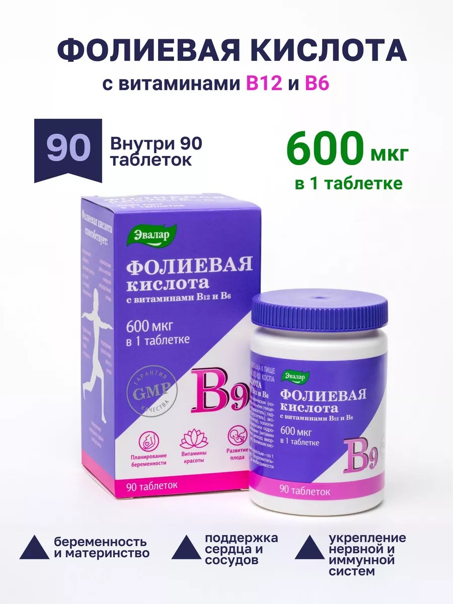 Эвалар Фолиевая кислота с витаминами В12 и В6, таб. №90