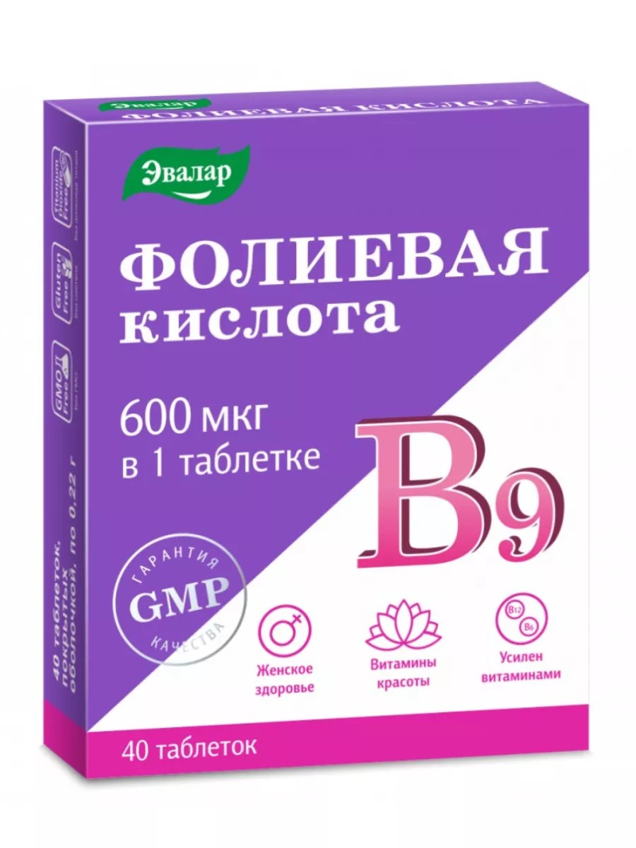 Внимание смена дизайна. Фолиевая кислота является фактором роста - она необходима организму для производства клеток кожи, слизистых, волос. Для женщины, планирующей беременность, фолиевая кислота является самым важным витамином, так как именно она отвечает за формирование плода и рост клеток. На ранних этапах беременности даже кратковременный дефицит фолиевой кислоты чреват развитием дефектов нервной системы у плода.Помимо участия в создании клеток плода, фолиевая кислота принимает участие в образовании всех форменных элементов крови. Кроме того, она обеспечивает хорошее настроение, участвуя в обмене биологически активных веществ серотонина и адреналина, которые играют важную роль в состоянии нервной системы.Витамин В12 и фолиевая кислота являются взаимосвязанными витаминами, поэтому рекомендуется их совместный прием. Недостаток витамина В12приводит к развитию частичной или вторичной недостаточности фолиевой кислоты.Витамин В6 участвует в превращениях аминокислот, метаболизме триптофана, липидов и нуклеиновых кислот, участвует в поддержании иммунного ответа, в процессах торможения и возбуждения в центральной нервной системе, способствует нормальному формированию эритроцитов. Способствует поддержанию нормального уровня гомоцистеина в крови. Недостаточное потребление витамина В6 сопровождается повышенной утомляемостью, депрессивным состоянием, нервозностью, ухудшением состояния кожи.Фолиевую кислоту можно назвать «витамином материнства». Для женщины, планирующей беременность, фолиевая кислота является самым важным витамином, так как именно она отвечает за формирование плода и его правильное развитие. При недостаточном количестве фолиевой кислоты в женском организме высока вероятность сопровождения наступившей беременности различными отклонениями в развитии малыша.Немаловажен прием фолиевой кислоты для молодых женщин, так как она регулирует ход менструального цикла и препятствует развитию остеопороза. Кроме того, фолиевая кислота обладает эстрогеноподобным действием и может замедлить наступление менопаузы и даже ослабить неприятные симптомы после ее наступления.Также фолиевая кислота необходима, чтобы нормально функционировала кровеносная система, были здоровыми и крепкими сосуды и капилляры.
