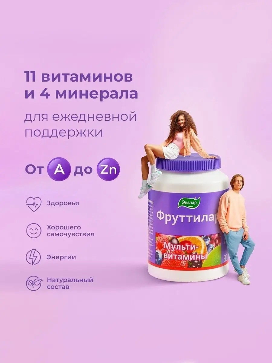 Эвалар Фруттилар Мультивитамины, витамины от А до Цинка, 30 шт