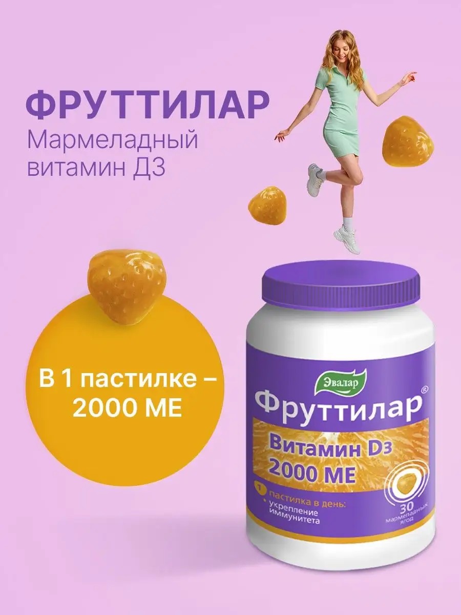 Эвалар ФРУТТИЛАР ВИТАМИН Д3 2000 МЕ, №30