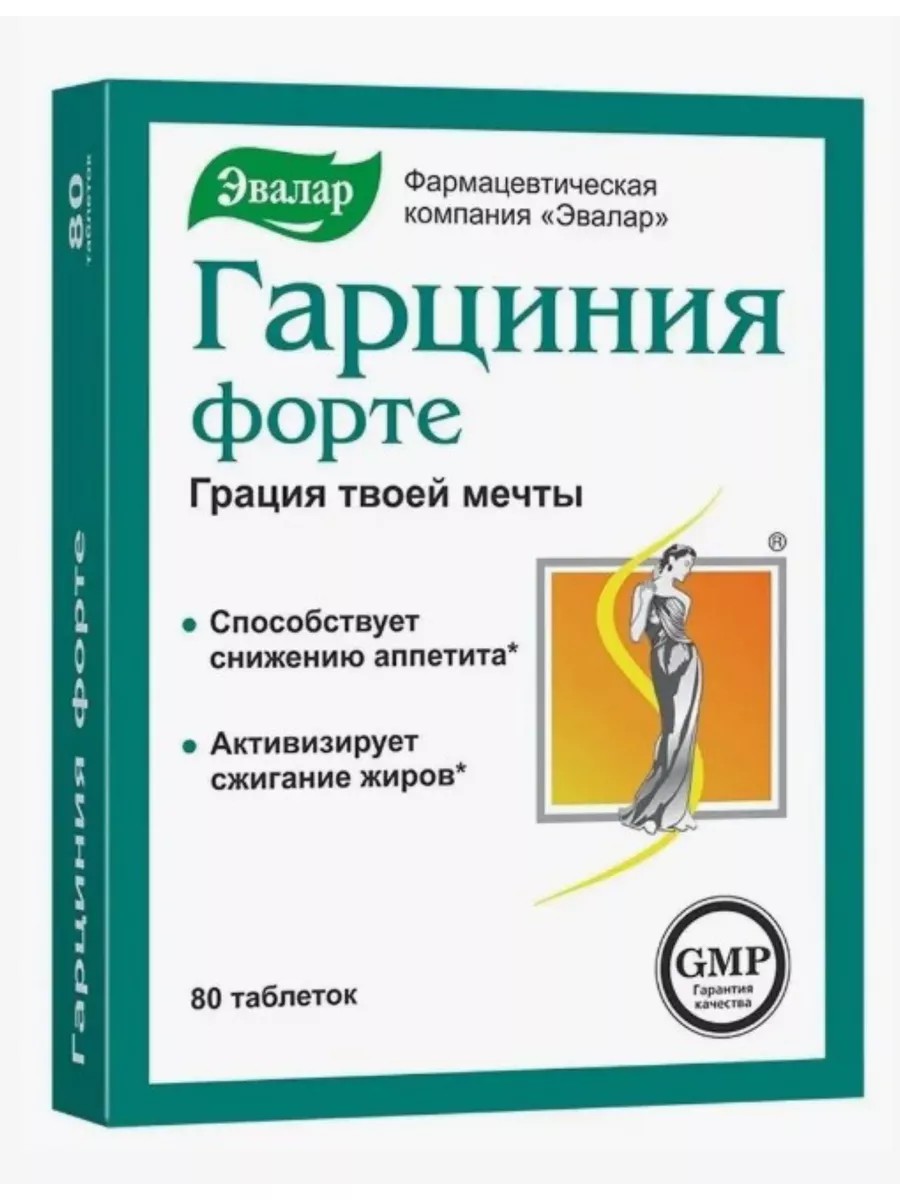 Биологически активная добавка, которая помогает ускорить процесс снижения веса и сбросить лишние килограммы. Каждая упаковка содержит 80 таблеток, которые надо принимать по 2 штуки в день перед едой. При регулярном приеме Гарцинии Форте разгружается ЖКТ, ингибируется синтез жиров и уменьшается аппетит. Это позволяет достичь быстрого и эффективного результата в борьбе с лишним весом. БАД не рекомендуется использовать при беременности, лактации, гиперчувствительности к компонентам. Экстракт гарцинии помогает снизит аппетит. Все дело в том, что содержащаяся в нем гидроксилимонная кислота (ГЛК) позволяет запустить в организме процессы, направленные на снижение избыточного веса, а при поступлении достаточного количества калорий помогает вовремя остановиться в еде.