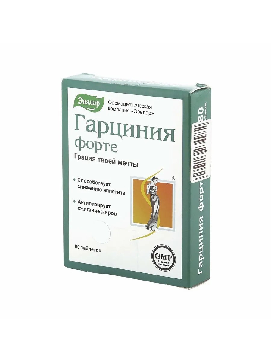 «Гарциния форте» — грация твоей мечты! Устраняет сразу несколько причин лишнего веса. Все понимают, как трудно научиться контролировать повышенный аппетит, особенно если есть привычка часто перекусывать. Но теперь снизить аппетит достаточно просто с Гарциния форте от Эвалар. Гарциния форте содержит экстракт гарцинии, пиколинат хрома, витамины В6 и С и экстракт фикуса, которые помогают контролировать аппетит. Гарциния форте: — способствует снижению аппетита; — активизирует сжигание жиров. Как работают компоненты:-Экстракт гарцинии помогает снизит аппетит. Все дело в том, что содержащаяся в нем гидроксилимонная кислота (ГЛК) позволяет запустить в организме процессы, направленные на снижение избыточного веса, а при поступлении достаточного количества калорий помогает вовремя остановиться в еде.-Пиколинат хрома является источником биодоступной формы хрома. Хром активирует окисление жиров, поддерживает нормальный физиологический уровень глюкозы в крови, что в свою очередь способствует подавлению тяги к сладкому и естественному снижению веса. Добавки хрома используют в рационах питания у лиц с лишним весом, так как они эффективно способствуют снижению жировой массы.-Витамины В6 и С участвуют в липидном и белковом обмене, повышают общий тонус организма.-Фукус — морская бурая водоросль, содержит в своем составе соединения йода, которые принимают участие в липидном и белковом обмене.-«Гарциния форте» избавит от жировых отложений, «сжигая» накопленное, отрегулирует обмен веществ. С «Гарцинией форте» легко поддерживать форму. «Гарциния форте» — грация вашей мечты!br/Экстракт гарцинии - 400 мг; Витамин C - 40 мг; Экстракт фукуса - 24 мг; Витамин B6 - 1,2 мг; Хром - 16 мкг.